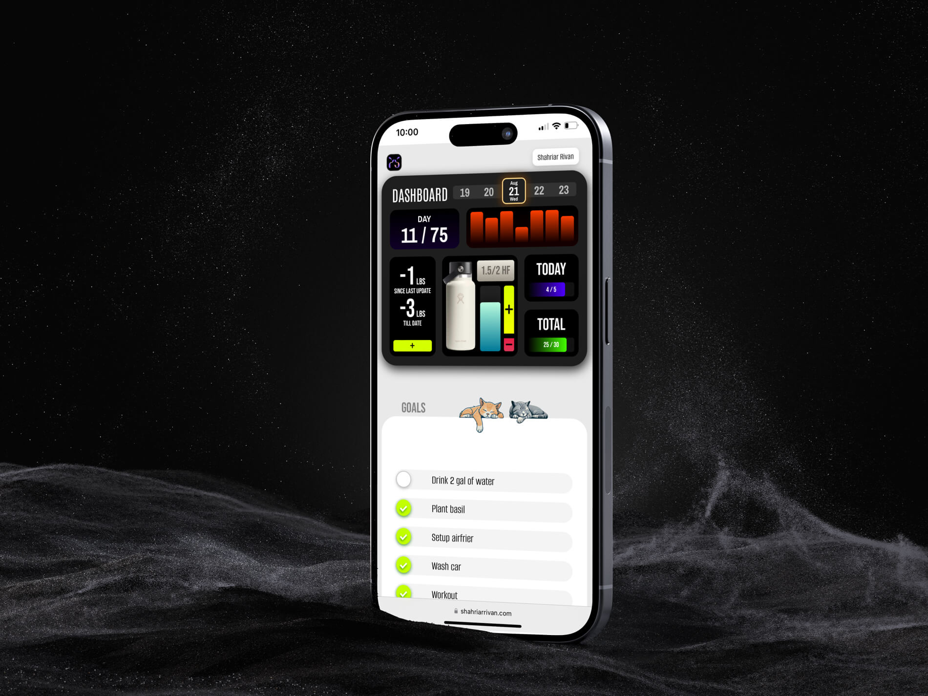 75 Days is a web app designed to support and enhance your fitness and wellness journey, offering a seamless and visually appealing user experience. With this app, you can easily set daily goals, track your weight and water intake, and see your progress come to life through beautiful, interactive graphs. Whether you're using your phone, tablet, or desktop, 75 Days adapts effortlessly to any device, ensuring a consistent and engaging experience wherever you are. The app's clean and intuitive design makes it simple to stay on top of your goals. You'll be able to see at a glance how much of today's and total goals you've completed, with a dedicated 7-day graph to help you track your progress over time. Weekly and current stats provide deeper insights, helping you understand trends and see where you stand in your journey. I am excited to bring 75 Days to the public soon, and already planning to expand it into a mobile app so you can take your wellness journey with you wherever you go. The design is crafted to keep you motivated and inspired, making your path to wellness not just achievable but enjoyable. 75 Days is more than just an app—it's your companion on the road to a healthier, happier you.