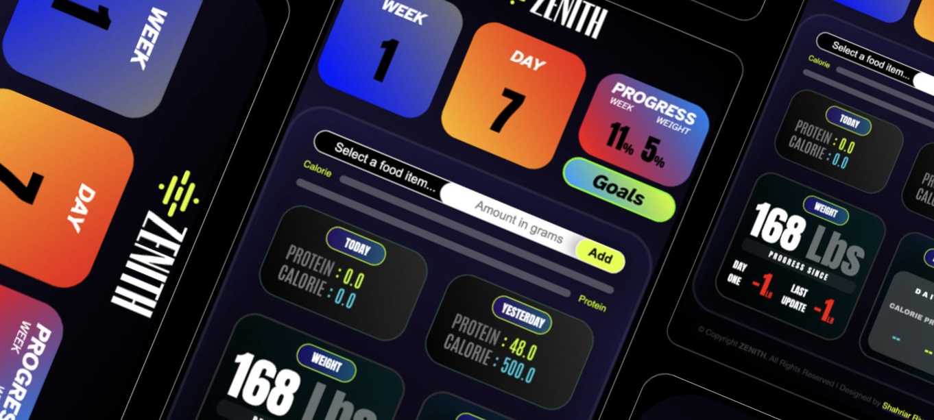 UPDATE: This project has a successor! Check out APOGEE This is a very personal project of mine which i mainly created for my personal use. I am an fitness enthusiast and highly maintain my diet so i have to keep track of my daily calorie and protein intake for weeks and the only options to do that is either manually write things down on notes or use one of many existing "fitness tracking" apps but all the ones i have tried are filled with unnecessary functions, also those apps are perfect for people who eat packaged food with pre-existing calorie and protein info but me, who cooks my own food and have to manually calculate the amount of calorie and protein in that food item, i needed a better option and so i created ZENITH. With Zenith i can add food items and give them their calorie per gram and protein per gram info so next time all i have to do is to select that food item and just enter the amount in grams i've consumed. Additionally i can set the length of my goal and track my weight and it gives me all kinds of statistics based on my weight, protein and calorie. Currrently it is only created for just one user and it stored all data on a Firebase database. In the future i plan to turn it into an actual app and publish it for everyone to use.
